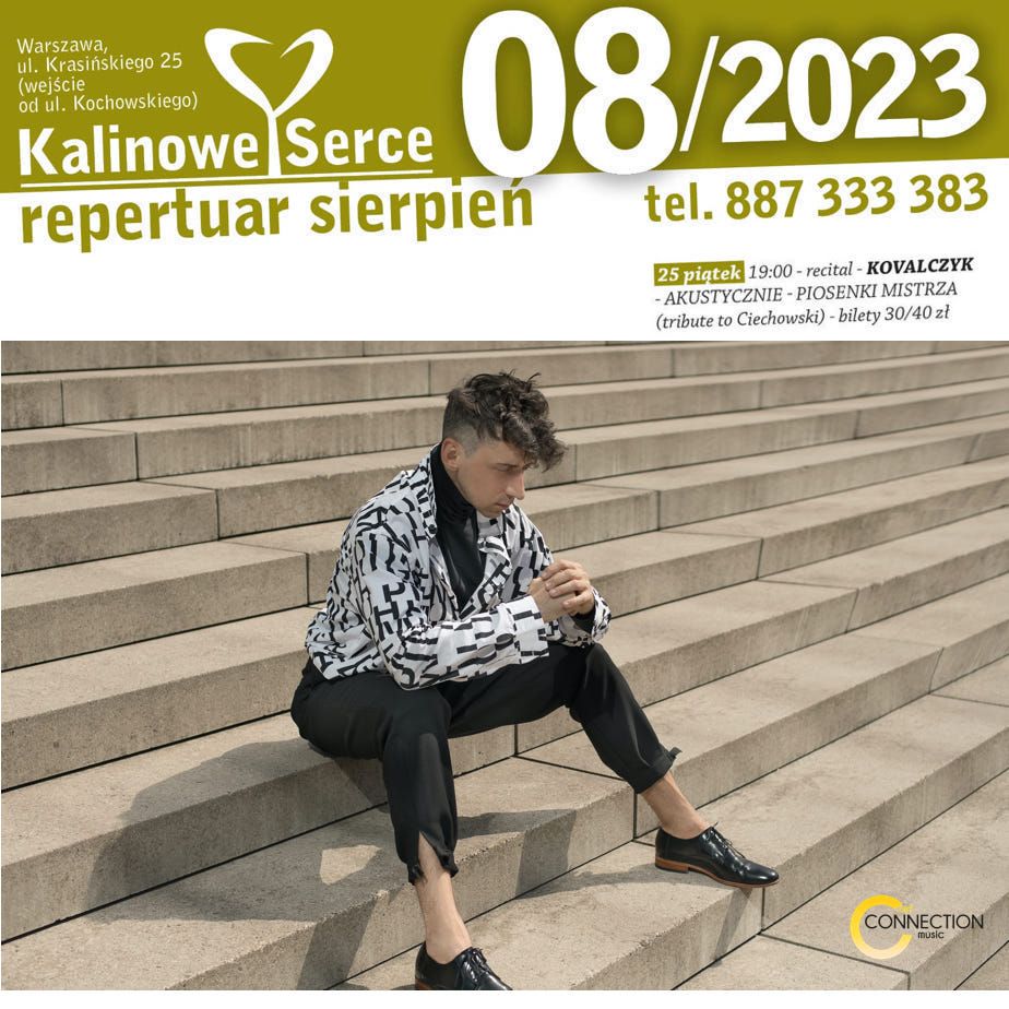 25 sierpnia o godzinie 19:00, po raz pierwszy na scenie Kalinowego Serca, zagoszczą dźwięki niezwykłej muzyki. W tym wyjątkowym wieczorze wystąpi Kovalczyk - ceniony producent muzyczny oraz charyzmatyczny wokalista, wyróżniający się niepowtarzalnym głosem.